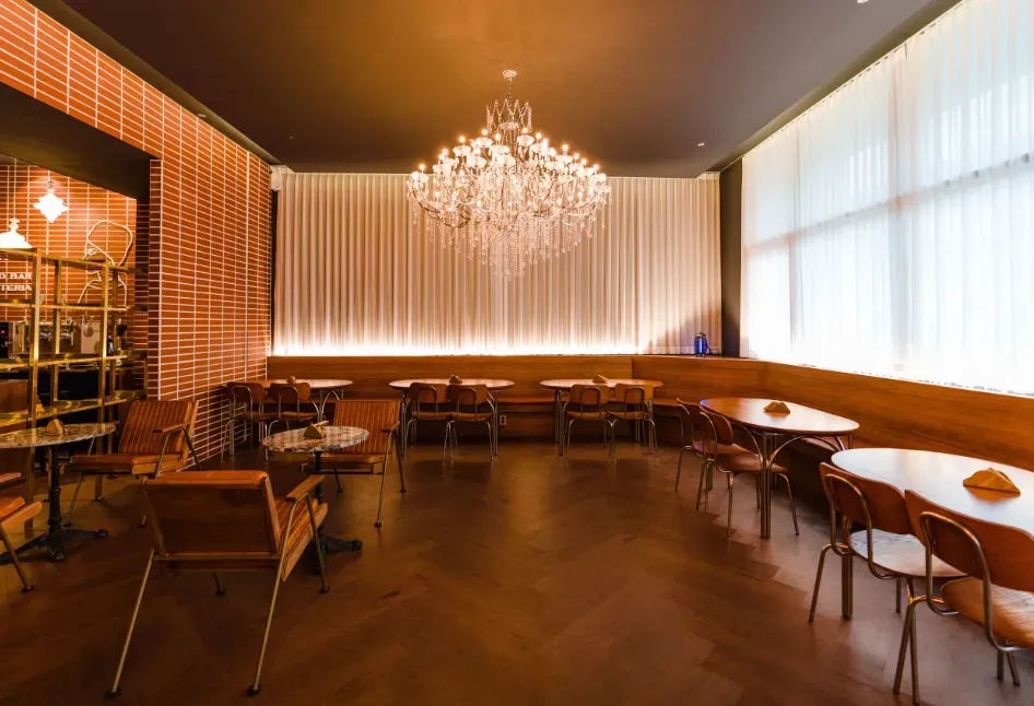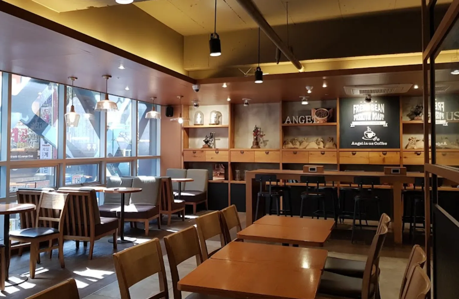私たちのコリビングのすぐ前にあるフランチャイズカフェです。2階は広々としていて、パソコン作業にも適しています。