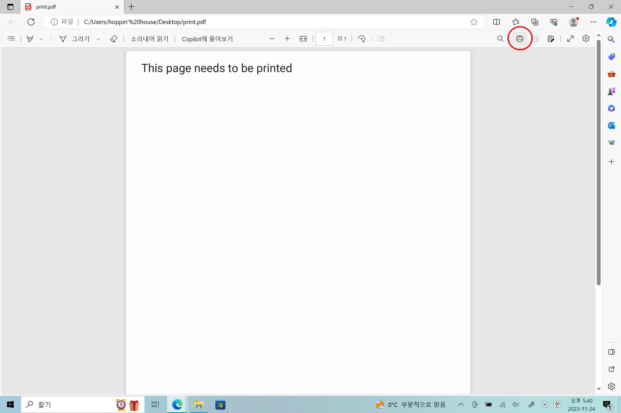 When a pop-up window appears, check that the printer is set to “Samsung C56x Series” and press the blue button to start printing.