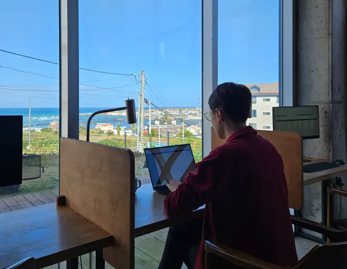 At Hoppin Jeju, you’ll work from inspiring spaces, explore hidden corners of the island, and share meaningful moments with a global crew of like-minded remote professionals. From seaside coworking spots to lush forest trails, every detail is curated to help you experience Jeju like a local, not a tourist.