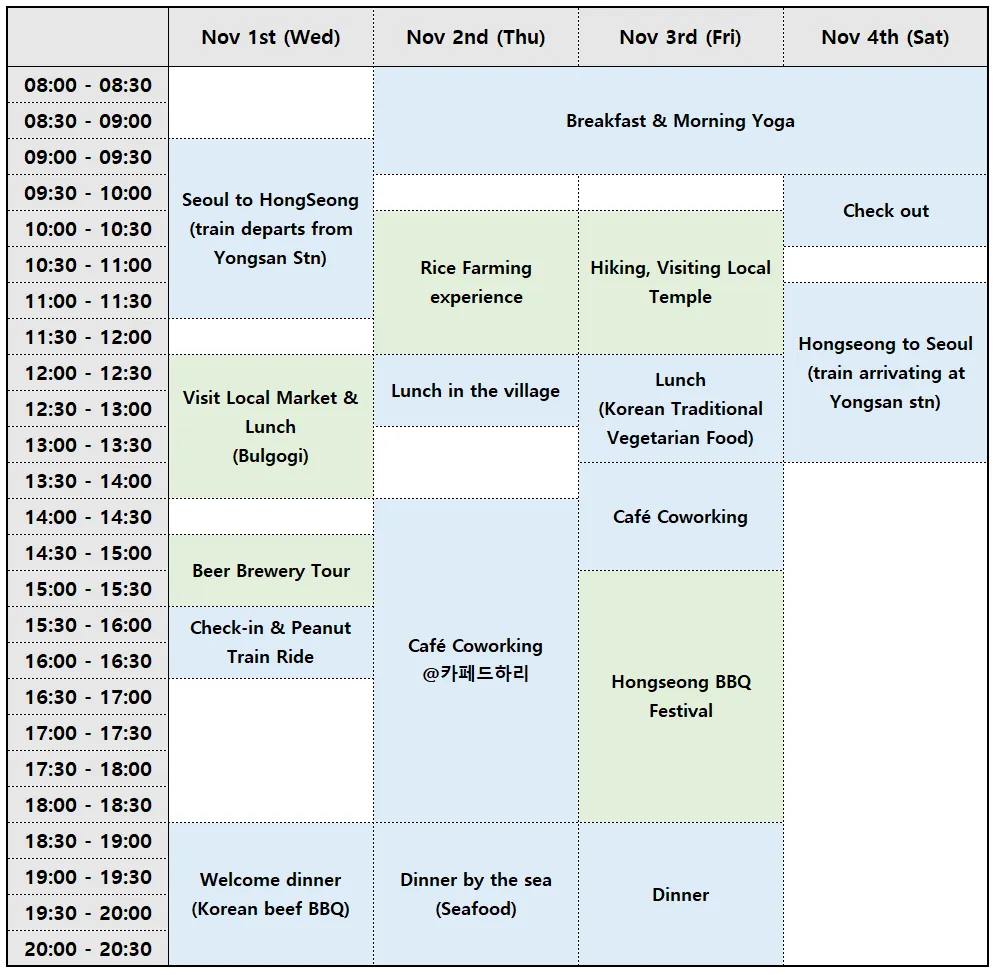 Local transportation within Hongseong will be arranged, and all travel costs will be covered by the program fee.